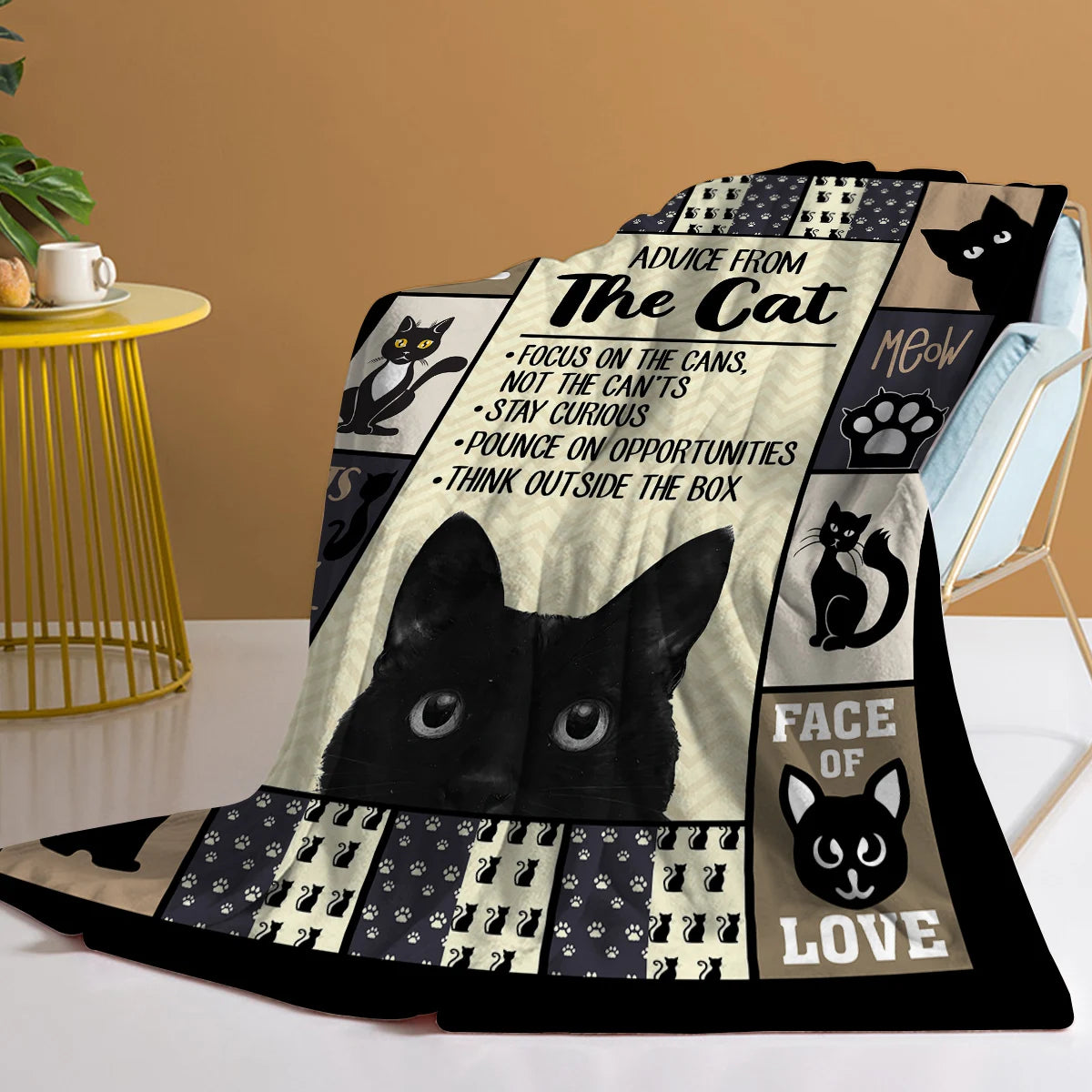 Featuring an adorable black cat design, this blanket is perfect for cat lovers and those who appreciate cute, whimsical decor. The playful cat print adds a touch of fun to your home, making it an eye-catching accessory in any room. The versatile color scheme ensures that it blends seamlessly with various interior styles, whether you have a minimalist bedroom or a cozy living room. The black cat theme is stylish, making it suitable for both women, men, and even kids.